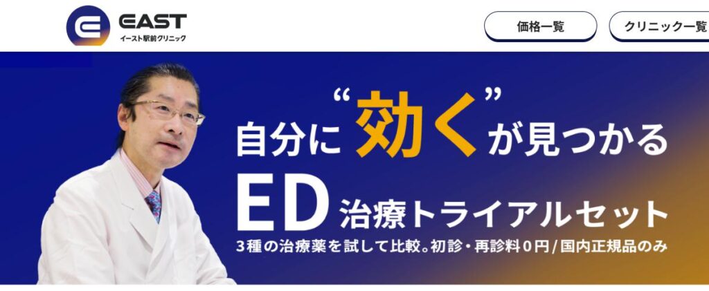 詳細はこちらから⇒ ED治療なら実績のイースト駅前クリニック