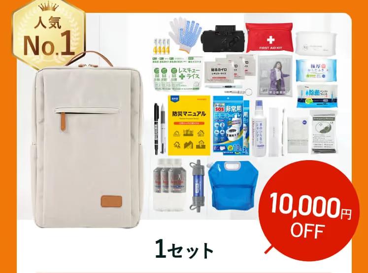 災害が起きた時のために、「防災士&消防士監修」の44セットが入った防災バッグがあると、いざと